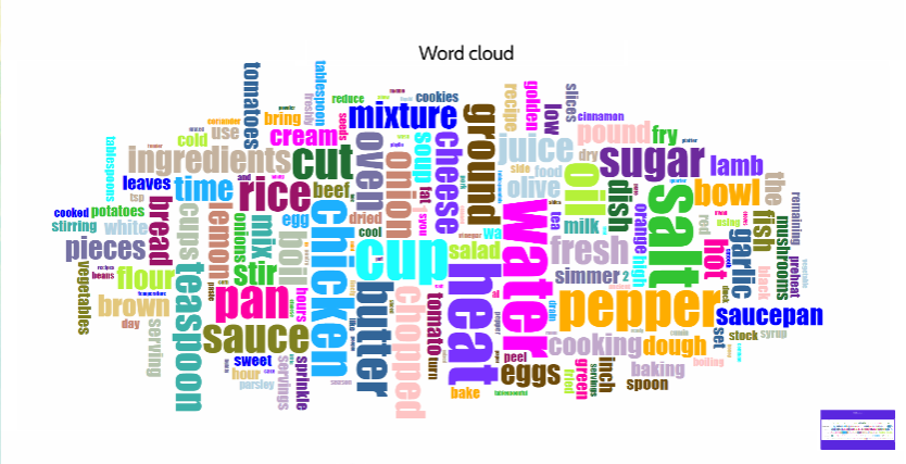 After finally having a nice collection of cookbooks, I first used Voyant to analyze the cookbooks. I mainly used two tools: word cloud and bubblelines.